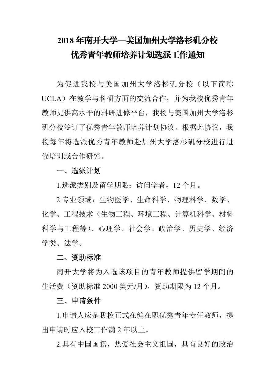附件一:《南开大学—美国加州大学洛杉矶分校项目申报表》.docx