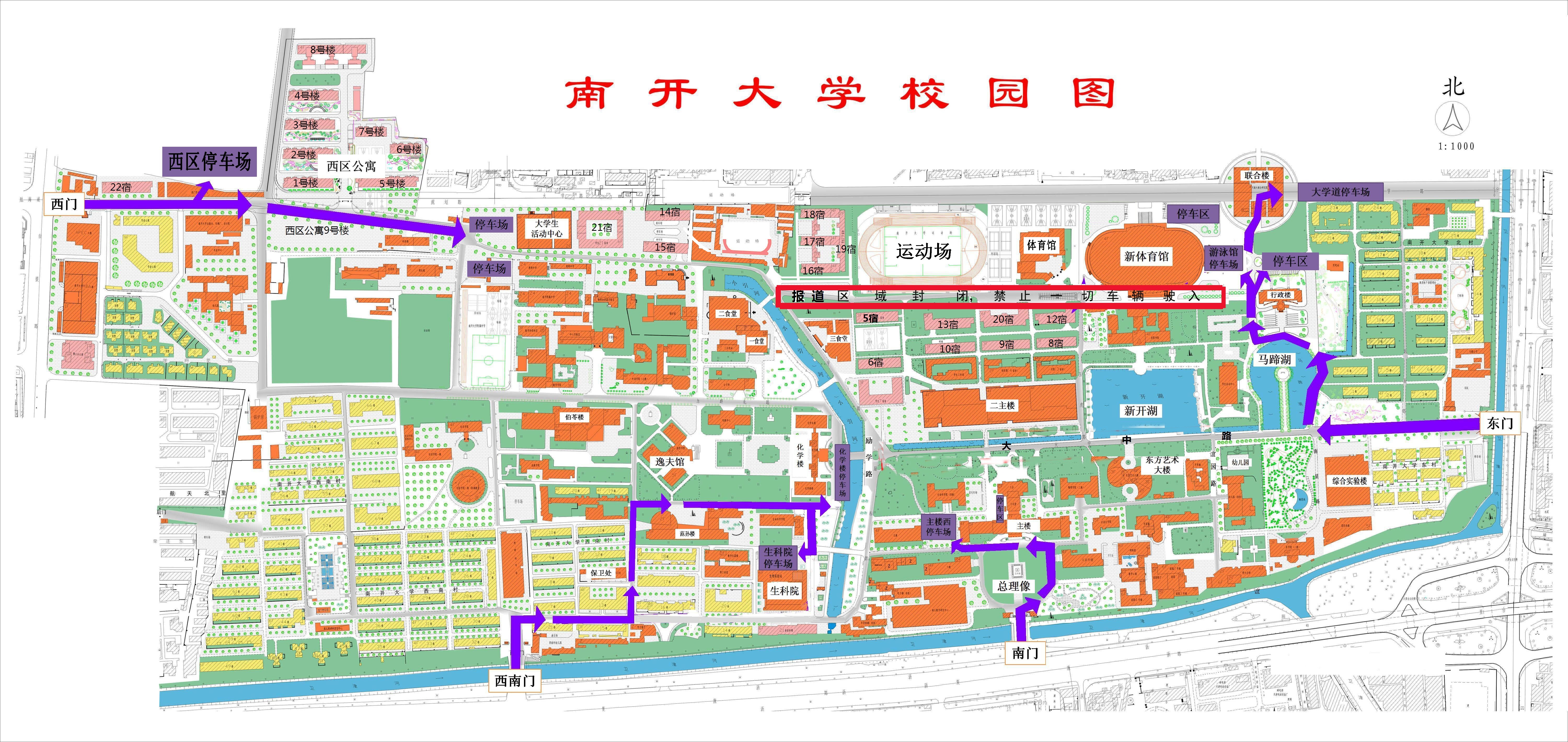 根据学校工作安排,9月2日(周日)为南开大学本科新生报到日,为保障校园交通安全,现将通行路线和停车场地明确如下: