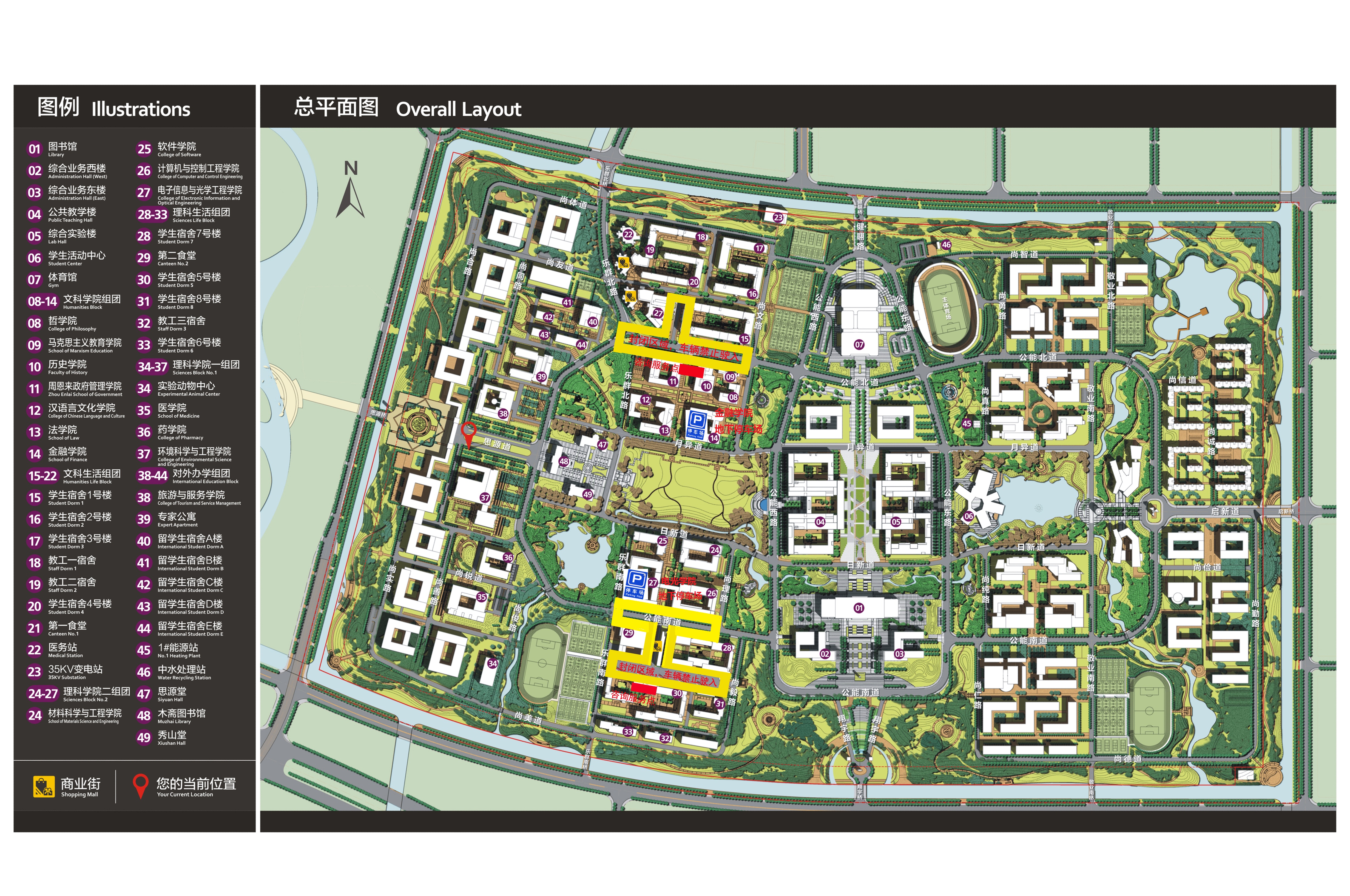 (1)公能南道、公能北道近文理科组团路段及学5B门前路段9月2日7:00—21:30禁止一切车辆驶入;