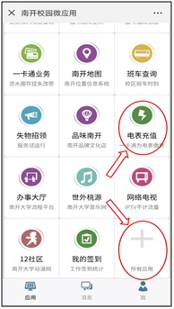 1. 关注微信“南开大学企业号”,添加“电表充值”功能